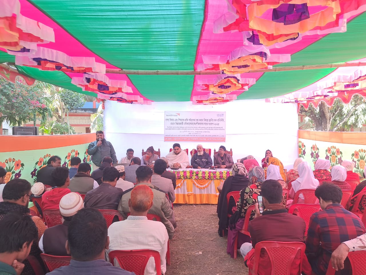 চাঁপাইনবাবগঞ্জের শিবগঞ্জ উপজেলার মোবারকপুর ইউনিয়নে বাল্যবিয়ে ও শিশুর প্রতি সহিংসতা বন্ধে স্থানীয় জনপ্রতিনিধি, শিক্ষকমন্ডলি, এনজিও প্রতিনিধি, অভিভাবক, ছাত্র-ছাত্রী, যুব প্রতিনিধি, স্থানীয় জনপ্রতিনিধিসহ বিভিন্ন শ্রেণী পেশার মানুষের সাথে এক মতবিনিময় সভা অনুষ্ঠিত হয়েছে। রবিবার সকাল সাড়ে ১০টার সময় উপজেলার মোবারকপুর ইউনিয়নের নামোটিকরী আলিম মাদ্রাসা মাঠে ইউনিসেফের অর্থায়নে ওয়ার্ল্ড ভিশন বাংলাদেশের সহযোগিতায় স্ট্রেংদেনিং সোশ্যাল এন্ড বিহেভিয়ার চেঞ্জ (SSBC) প্রকল্পের বাল্যবিয়ে বন্ধ ও শিশু সুরক্ষা বিষয়ক এক মতবিনিময় সভা অনুষ্ঠিত হয়। ভারপ্রাপ্ত অধ্যক্ষ আনোয়ারুল ইসলামের সভাপতিত্বে আব্দুল কাদির (সিএফ) এর সঞ্চালনায় প্রধান অতিথি হিসেবে উপস্থিত ছিলেন, মাহমুদুল হক হায়দারী, চেয়ারম্যান মোবারকপুর ইউনিয়ন পরিষদ। বিশেষ অতিথি হিসেবে উপস্থিত ছিলেন, আল-আমিন, সাবেক মেম্বার ও বিশিষ্ট সমাজসেবক, জামালুদ্দিন জেম, বিশিষ্ট সমাজসেবক ও ব্যবসায়ি, গোলাম মোস্তফা, সহকারী প্রধান শিক্ষক, মোবারকপুর উচ্চ বিদ্যালয়। এছাড়া আরো উপস্থিত ছিলেন আনসারুল ইসলাম, বিশিষ্ট ব্যবসায়ী, শফিকুল ইসলাম, প্রভাষক নামোটিকরী আলিম মাদ্রাসা। রেজাউল করিম, সহকারী শিক্ষক, বিভিন্ন প্রতিষ্ঠান প্রধান, ইউপি সদস্যগণ, অভিভাবক, ছাত্র-ছাত্রী, হুজুর ও এনজিও কর্মী, সংবাদকর্মীসহ আরও প্রমুখ।